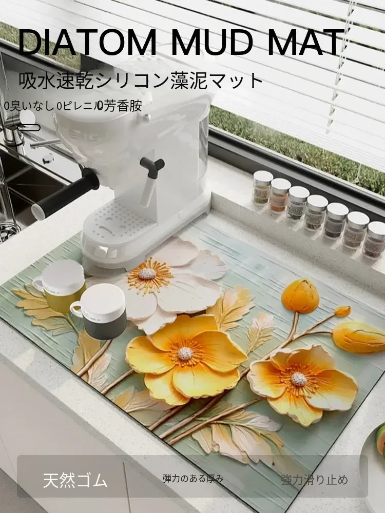 カフェマシン用バーストレイ吸水マット - キッチンシンクやカウンターに最適!シリカ土製で水分をしっかり吸収、食器やカップを保護します。おしゃれで機能的なキッチンアイテムを手に入れましょう!
