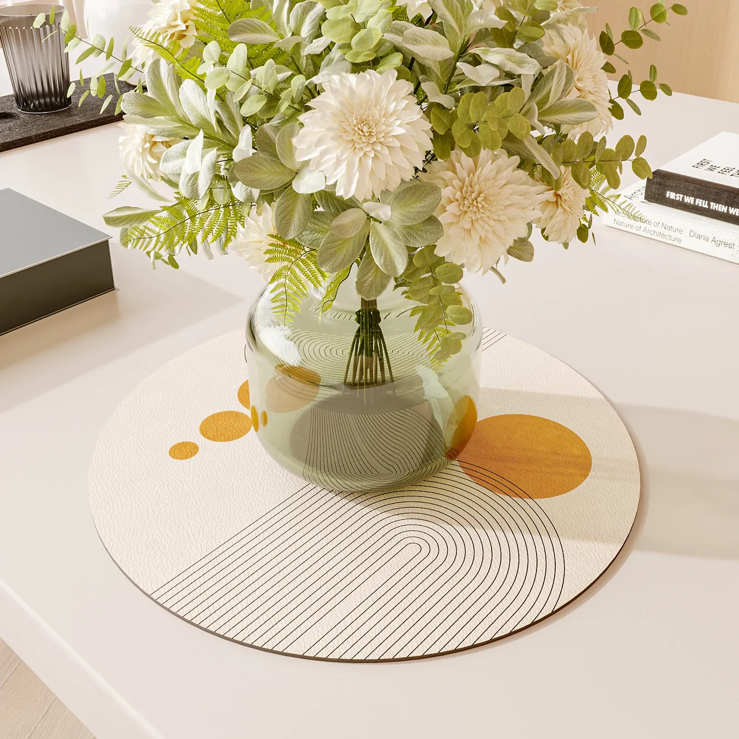 高級オフィス用 丸型ガラス花瓶マット - 耐熱・滑り止めデスクマット、素敵な花瓶や食卓を引き立てる防水ランチョンマット!