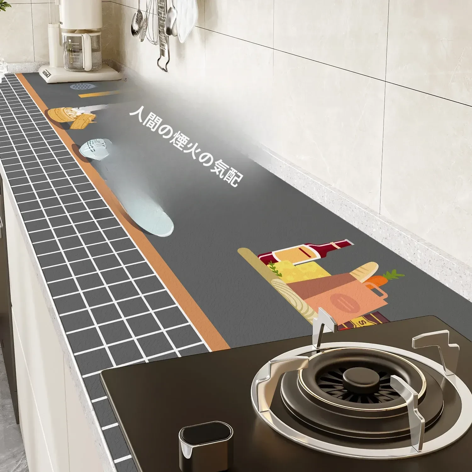 キッチン用シリコンマット - 吸水・防油・耐熱・防汚のデザインで、調理台をしっかり保護!シンプルでおしゃれなキッチンの必需品、清掃も簡単で、あなたの料理時間を快適にします。