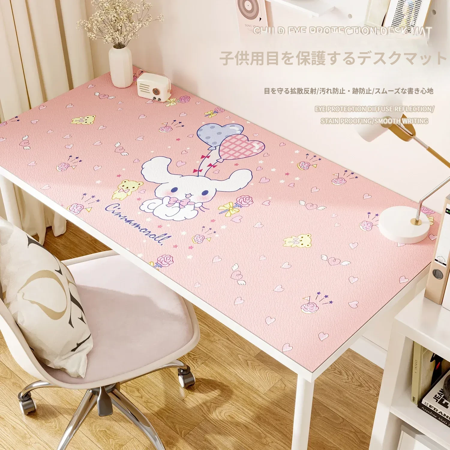 カワイイシナモロールのデスクマット|子供用学習デスクに最適!防水・目に優しいレザー製|女の子にぴったりなスタディ空間を演出!
