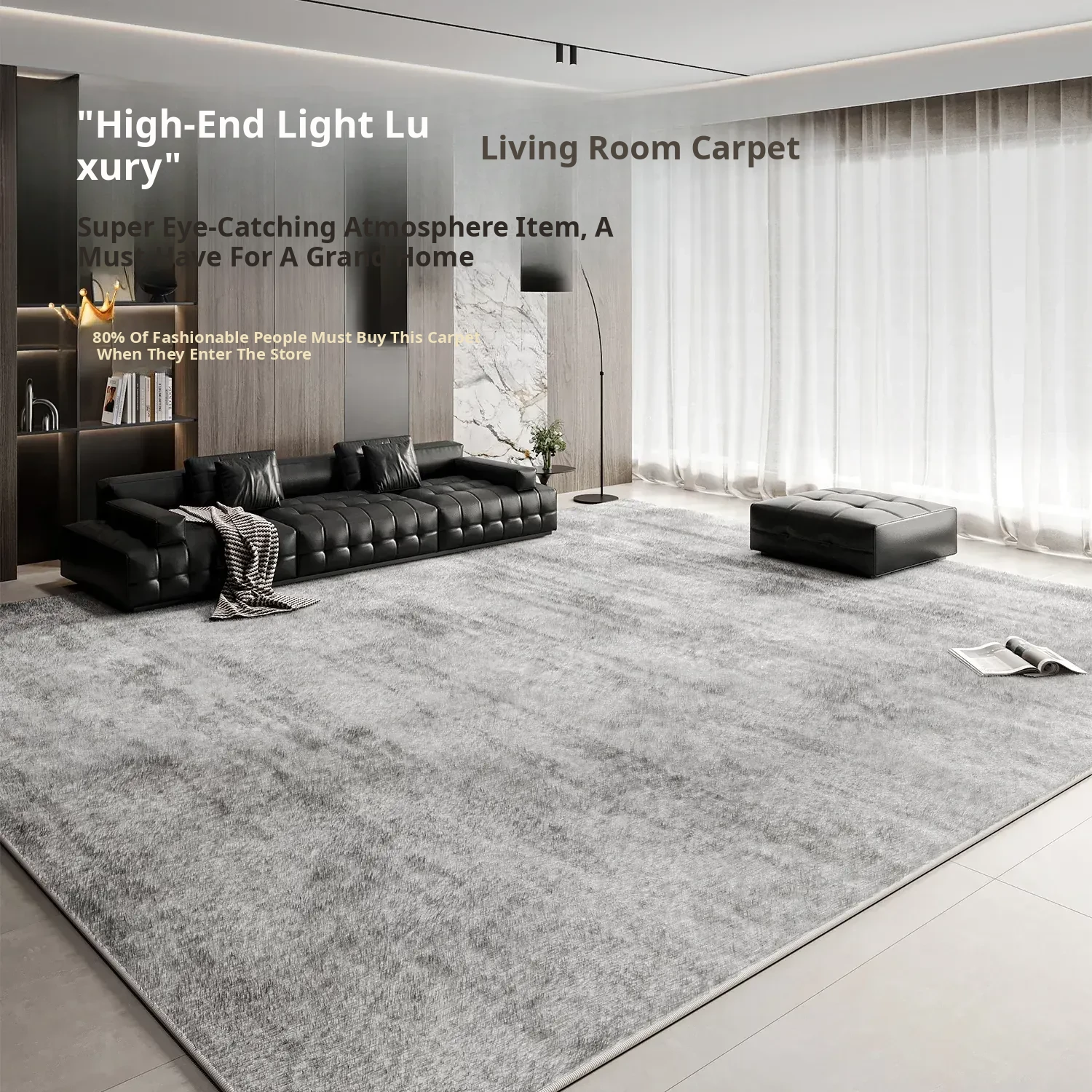Elegant Gray Italian Minimalist Area Rug for Living Room – No Wash, Easy Clean, Waterproof & Stain-Resistant Bedroom Mat for Bedside – Elevate Your Space with Luxury Comfort