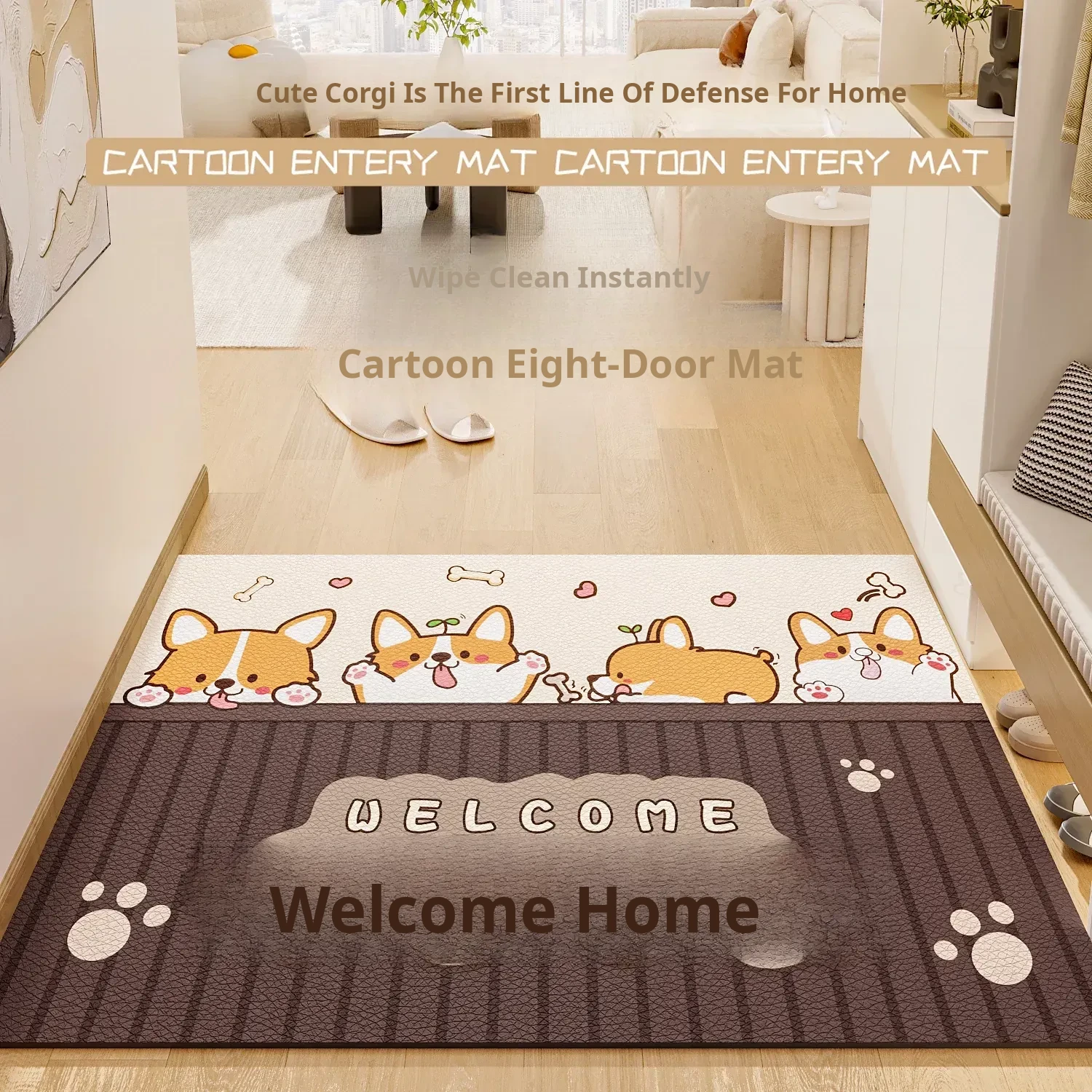 Cartoon Entryway Door Mat - Easy-Clean, Stain-Resistant PVC Leather Rug, Customizable Size for Your Home Entrance