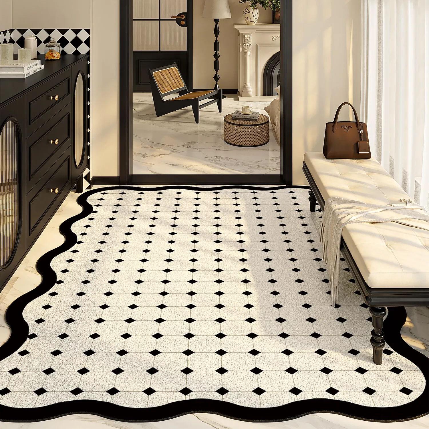 Elegant French Luxury Entrance Mat - High-End, Durable, Washable PVC Non-Slip Doorway Carpet, Customizable Size, Perfect for a Chic Home Entrance!