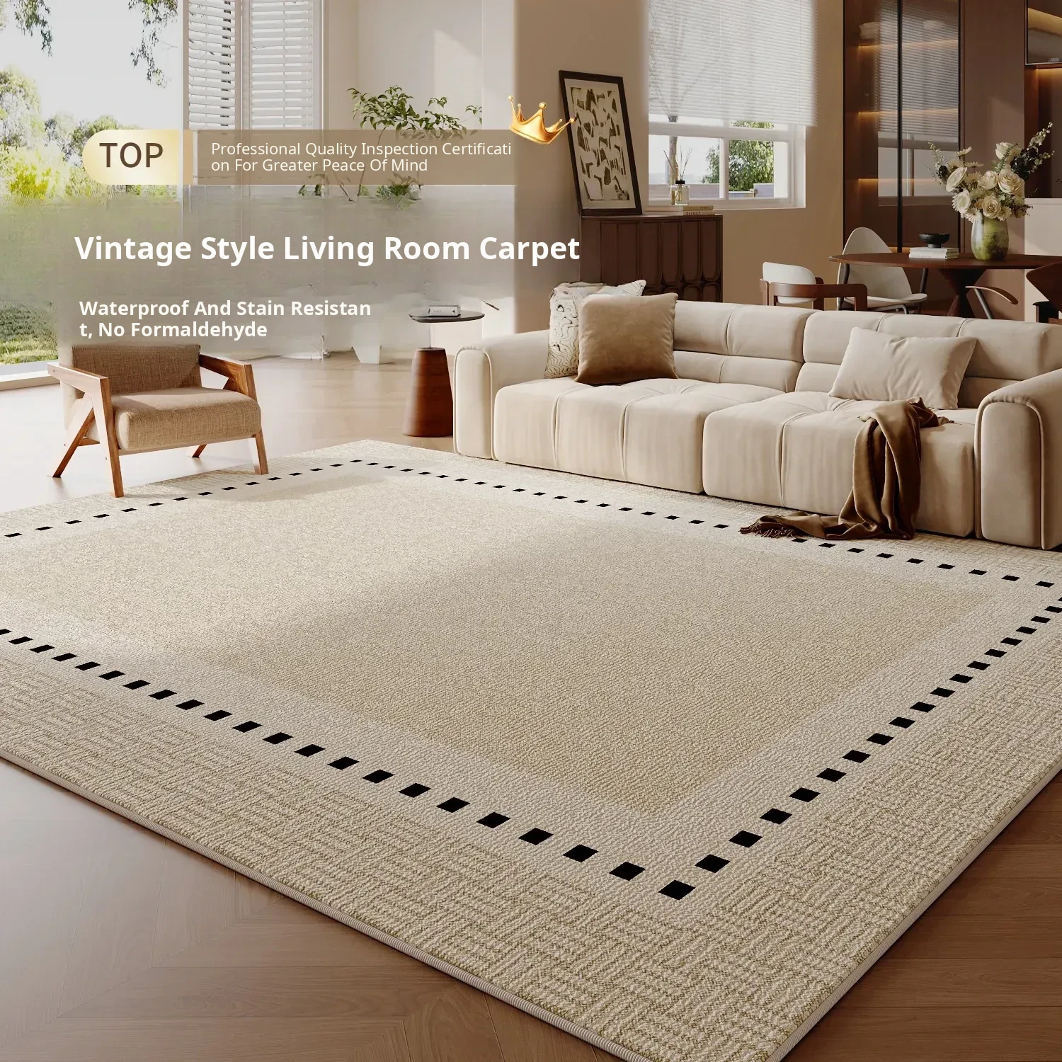 2026 New Vintage Cream Sofa Coffee Table Carpet - Waterproof and Stain-Resistant Living Room Mat, Easy to Clean, Ideal for Bedrooms and Living Spaces