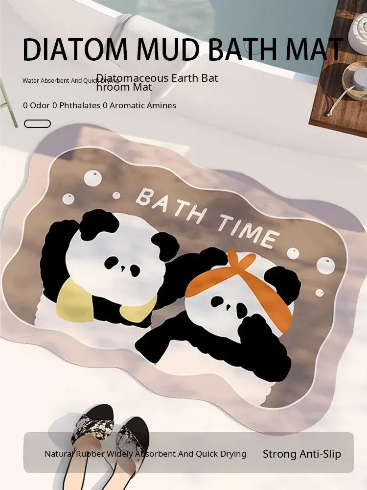 Cartoon Bamboo Fiber Bathroom Mat - Absorbent, Non-Slip Panda Door Mat for Toilet and Shower Entry, Ideal for Home Décor and Comfort