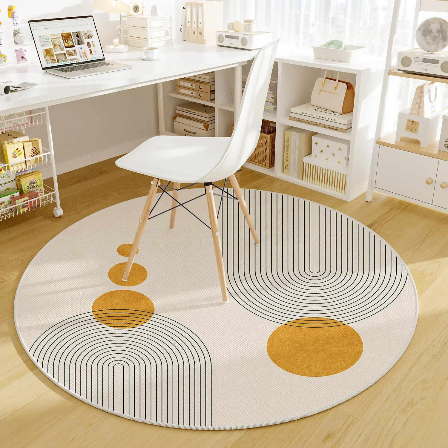 Creamy Wind Study Room Carpet - Stylish Round Area Rug for Computer Chair and Desk, Perfect Floor Mat for Learning Spaces, Bedrooms, and Living Rooms