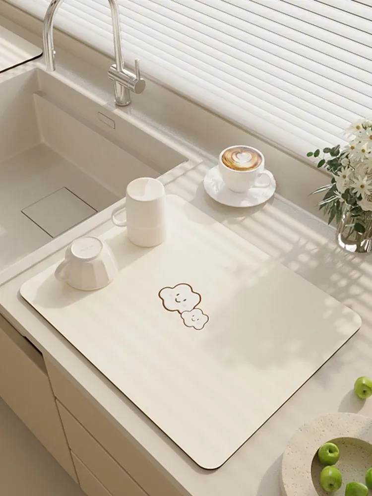 Absorbent Diatomaceous Water-Drain Mat for Kitchen Countertops - Versatile Silicone Protector Pad for Sink and Desktop, Customizable and Easy to Cut
