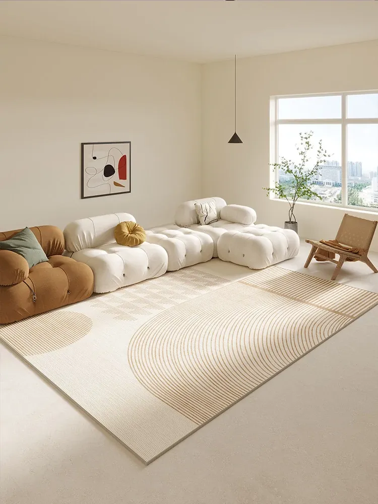 2026年新作!贅沢感あふれるクリーム風ラグマット - 防水&お手入れ簡単、リビングやベッドルームに最適な厚みのあるベージュラグ。ソファやコーヒーテーブルの下にぴったり!