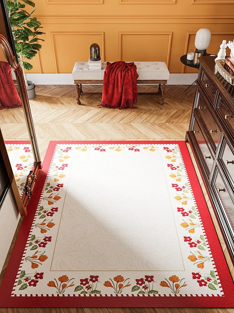 2026年新作!フランス風デザインの玄関マット - PVCレザー製で汚れに強く、簡単に拭き取れます。大判サイズでカット可能、おしゃれで実用的な玄関の必需品!