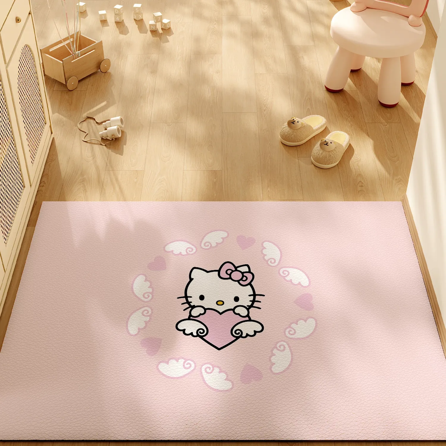 ピンクのハローキティ玄関マット - 可愛いカートゥーンデザイン、洗えるPVC製、室内用ドアマットでおしゃれなエントランスを演出!