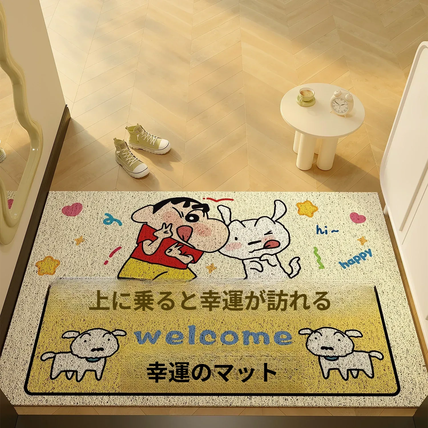クレヨンしんちゃんの玄関マット!スリップ防止付き、カット可能でおしゃれなデザイン。玄関を彩り、毎日の帰宅を楽しくするマストアイテム!
