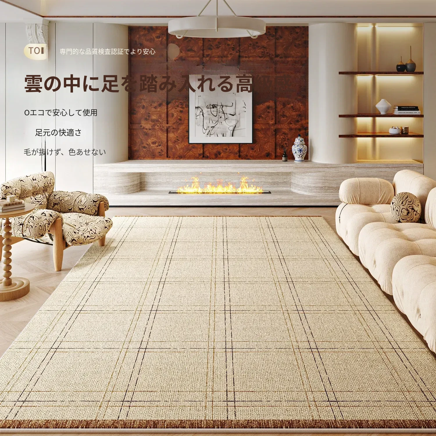 2026年新作!お手入れ簡単な防水カーペット - リビング&ベッドルームにぴったりなヴィンテージクリーム風デザイン。ソファやテーブルの下に最適で、汚れをサッと拭くだけでOK!快適な空間を演出します。