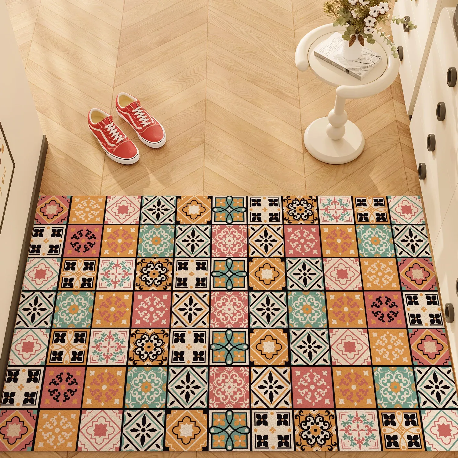 アメリカンレトロ玄関マット|高級感あふれる軽やかなデザイン|汚れに強く、簡単お手入れ!PVC製の大容量玄関カーペットで、あなたの家をスタイリッシュに演出します。